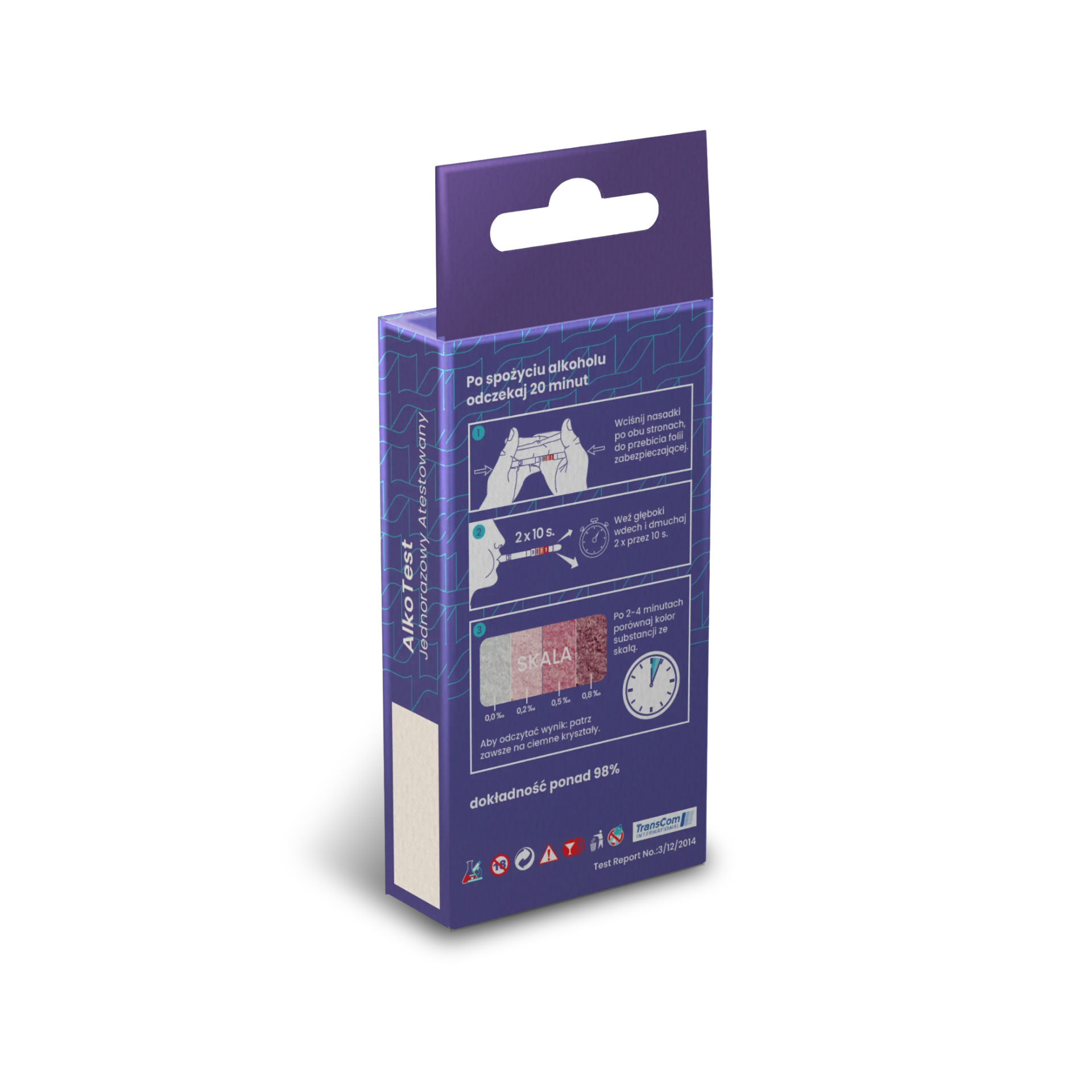 Każdy alkomat jednorazowy w zestawie jest pakowany oddzielnie i gotowy do natychmiastowego użycia. Procedura wykonania testu jest prosta: