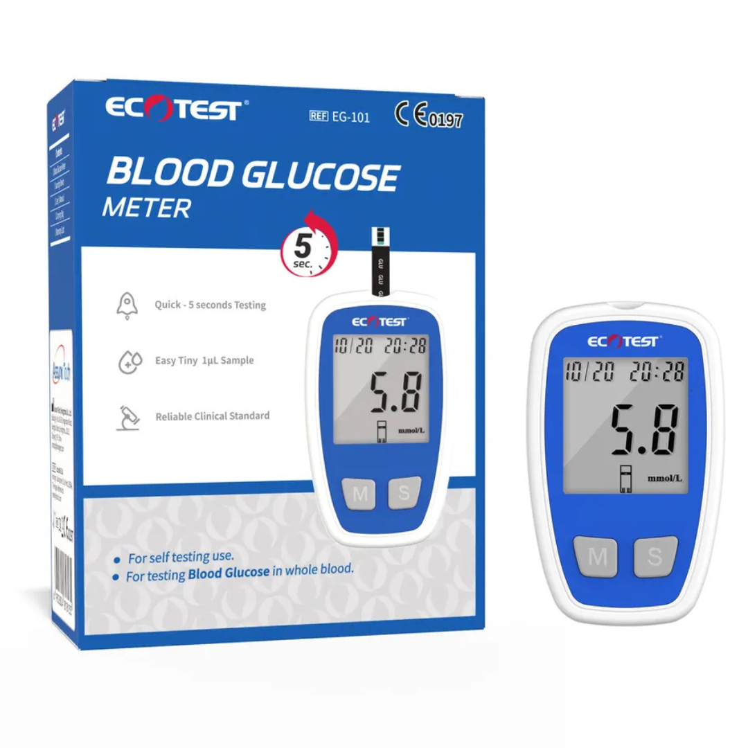 Glukometr EG-101 to precyzyjne urządzenie przeznaczone do samodzielnego, ilościowego pomiaru poziomu glukozy we krwi kapilarnej pobranej z opuszki palca. Pozwala uzyskać wynik już po 5 sekundach, wykorzystując minimalną próbkę krwi o objętości zaledwie 1 µL. Dzięki niewielkim wymiarom i czytelnemu ekranowi sprawdza się w domu, w pracy oraz w podróży, umożliwiając stałą kontrolę glikemii w dowolnym miejscu.