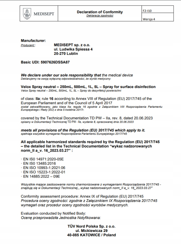 Nazwa handlowa: Velox Spray Neutral MEDISEPT