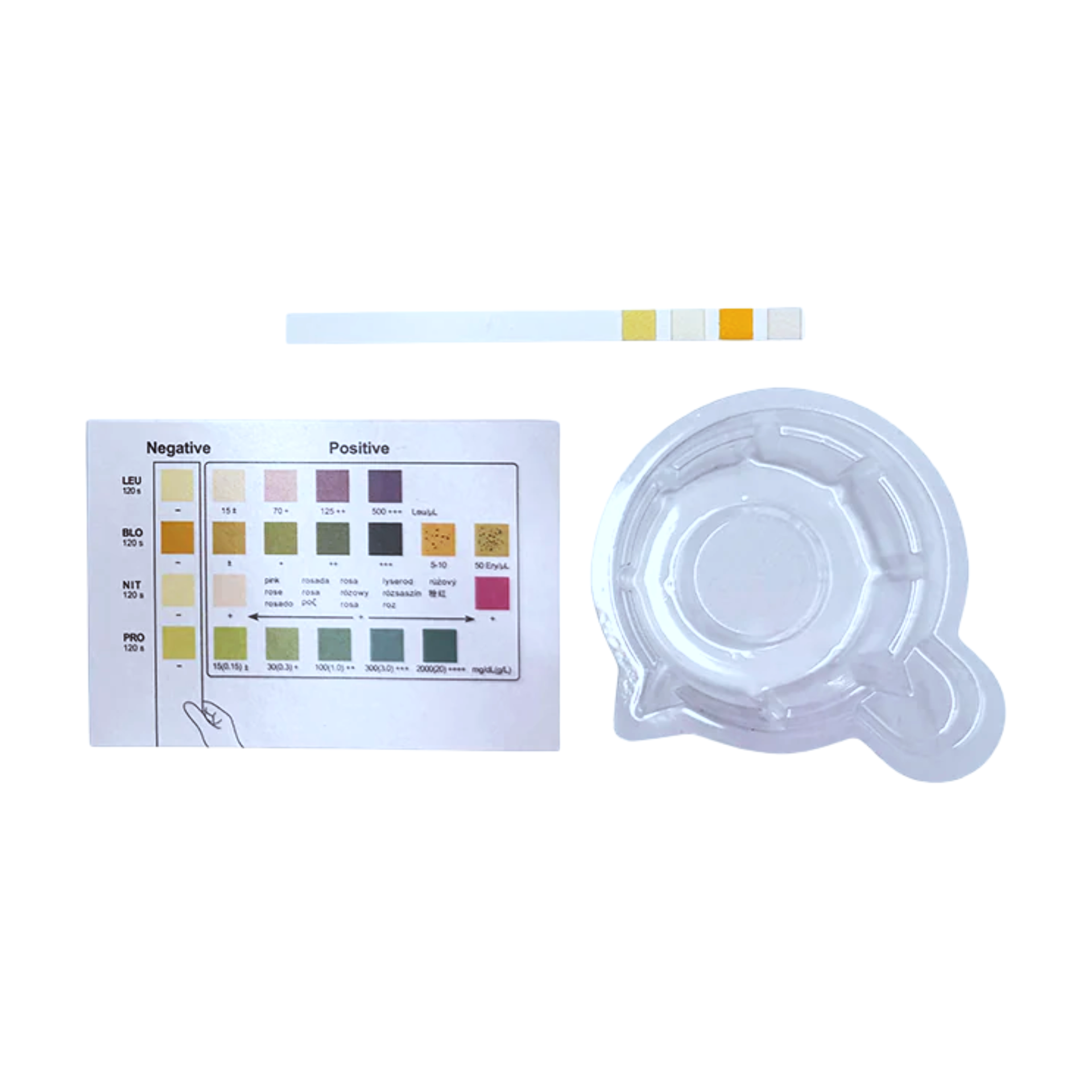 - 1 plastikowy pojemnik na próbkę moczu