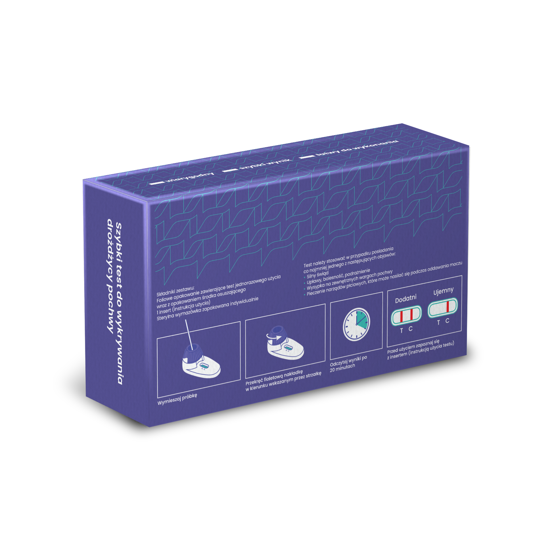 Vaginal Test to szybki i wygodny test diagnostyczny przeznaczony do samodzielnego wykrywania drożdżaków pochwy, w tym grzybów Candida albicans, które są jedną z najczęstszych przyczyn infekcji intymnych u kobiet. Urządzenie pozwala na przeprowadzenie badania w warunkach domowych, bez konieczności wizyty u lekarza czy oczekiwania na wynik laboratoryjny. Rezultat testu pojawia się już po 10 minutach, umożliwiając szybką reakcję i rozpoczęcie odpowiedniego leczenia.